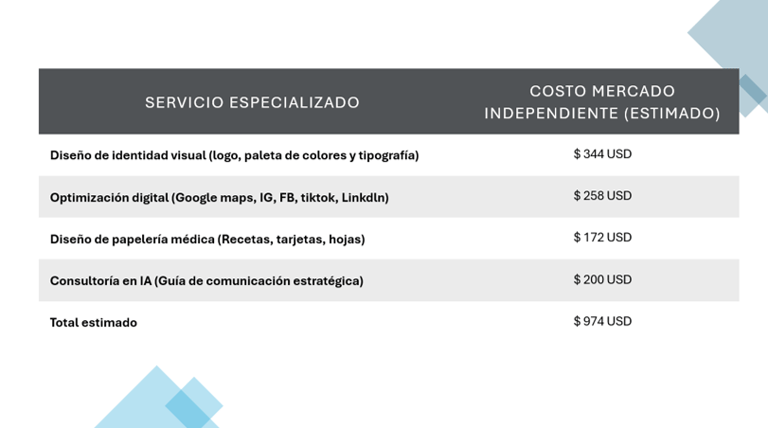Este servicio es el puente ideal para el profesional que busca alinear su imagen con sus valores y para el nuevo médico que desea destacar en un mercado competitivo desde su primera consulta. Unificamos tu esencia, optimizamos tu presencia digital y te equipamos con tecnología de IA para que tu comunicación sea tan precisa como tu práctica médica.